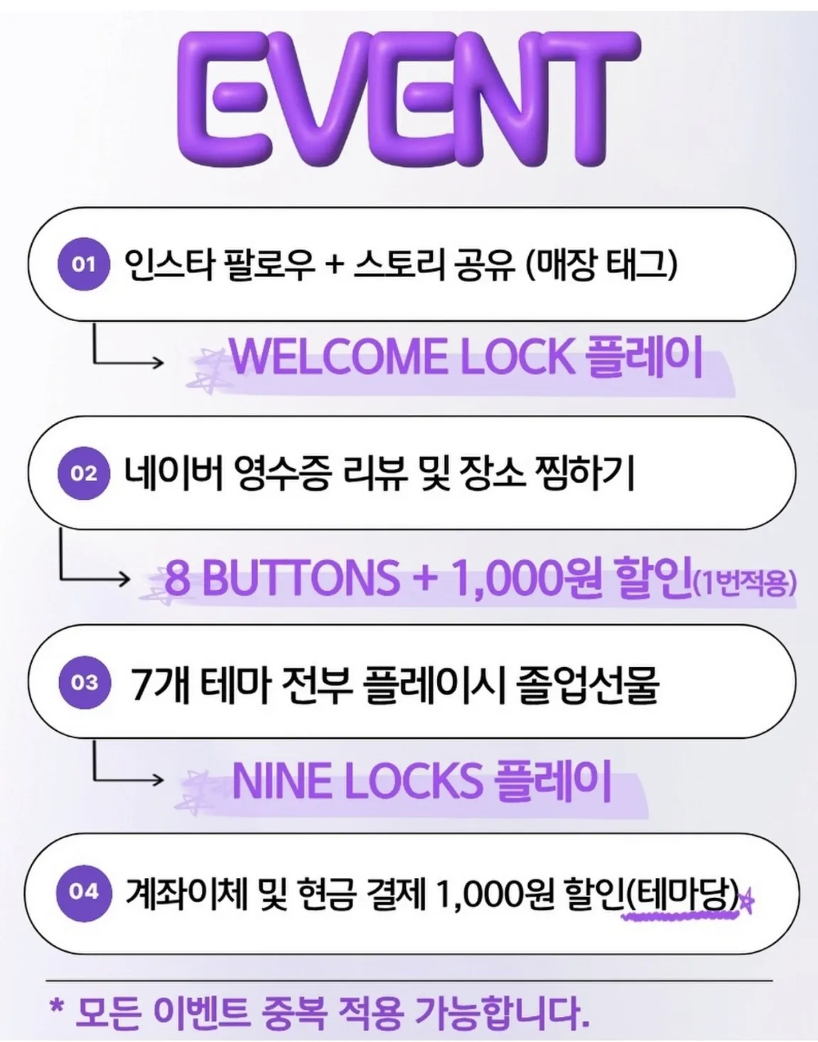 ※ 네이버 리뷰 작성 후 현금 or 계좌 결제 시 테마당 천원 할인 있습니다!