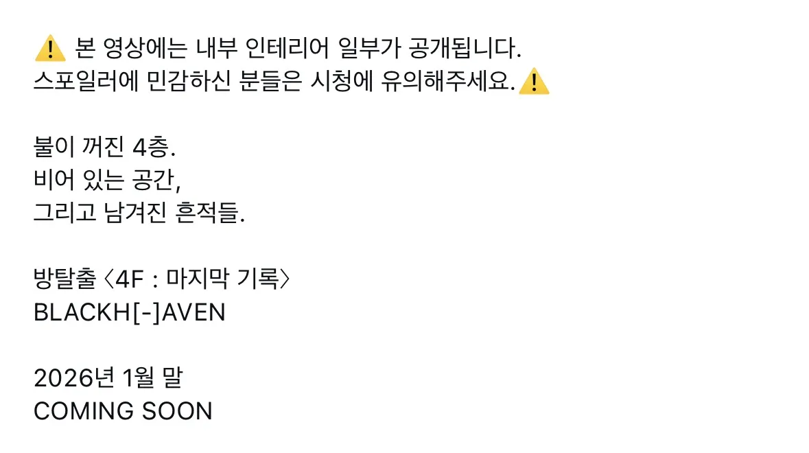 공포 방탈출 4F : 마지막 기록 2026년 1월 말 오픈예정