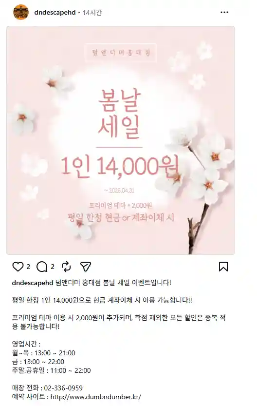 덤앤더머 방탈출 홍대점 봄날 세일 이벤트N