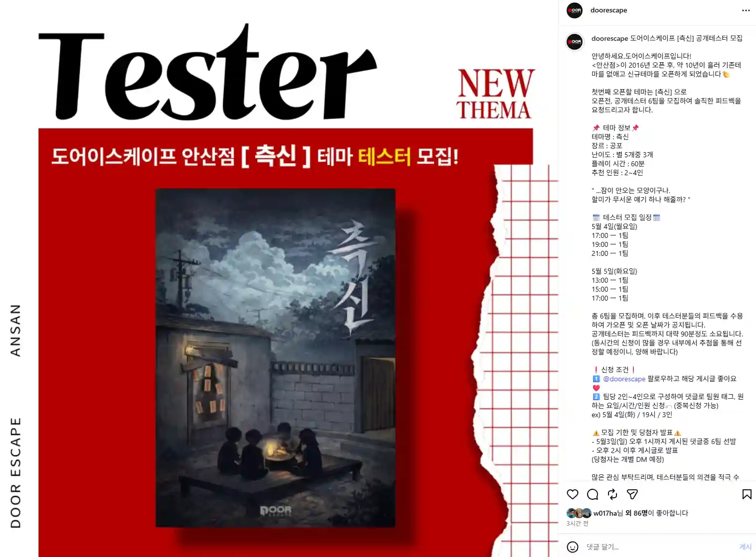 1️⃣ @doorescape 팔로우하고 해당 게시글 좋아요❤️