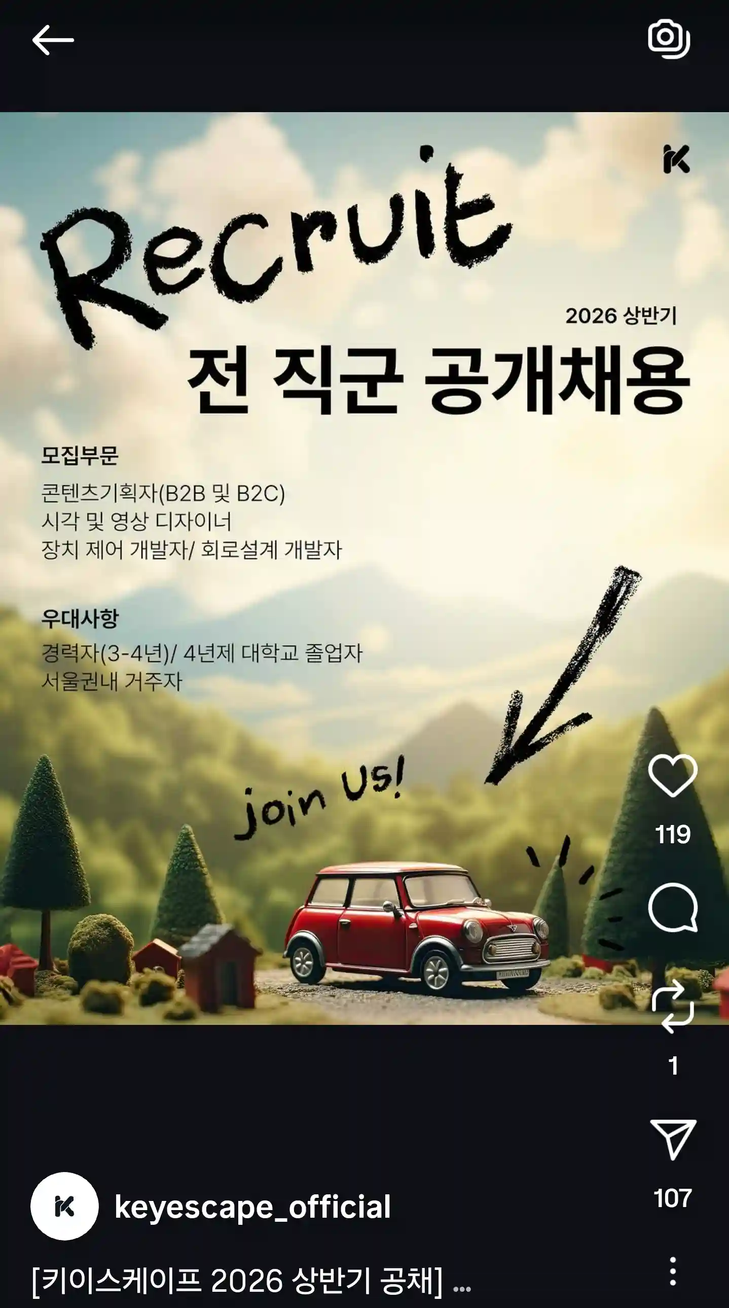 방탈출계의 삼성전자(?) 키이스케이프 2026년 상반기 공개채용 안내