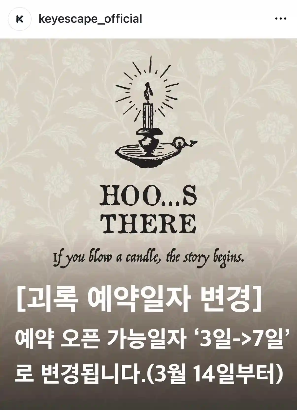 키이스케이프 후즈데어 괴록 예약오픈 3일 > 7일로 3/14일 부터 변경
