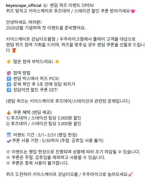 키이스케이프 후즈데어 / 스테이션 방탈출 카페 할인쿠폰 이벤트