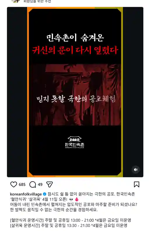 한국민속촌 혈안식귀 살귀옥 4월 오픈 N