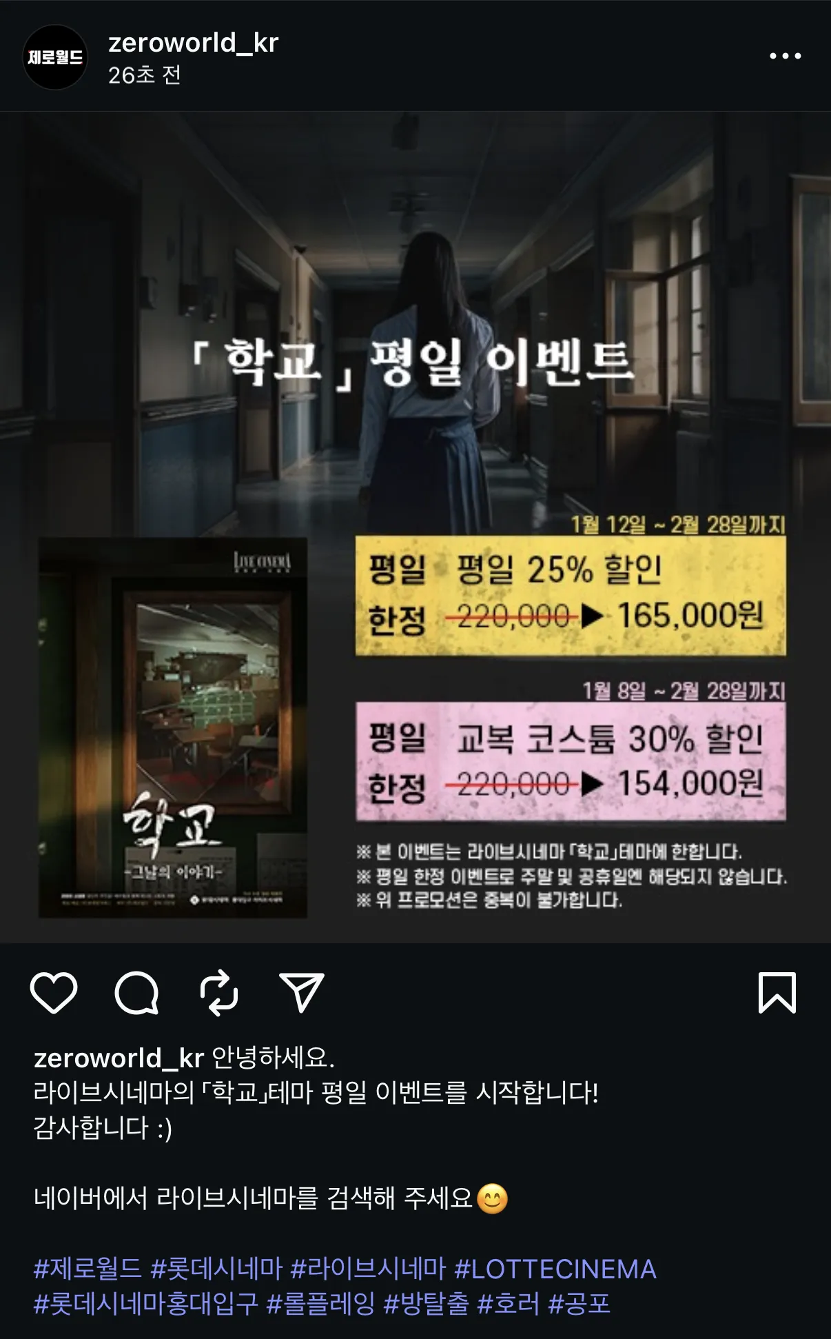 홍대 라이브시네마 학교 평일 25% 할인 이벤트! 165,000원 ~2월 28일 까지!