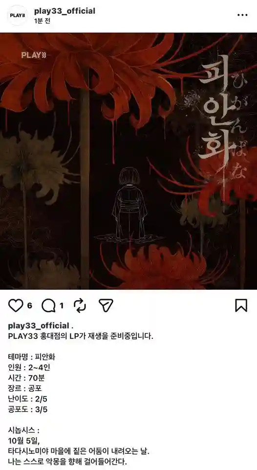 홍대 방탈출 플레이33 피안화 오픈 예정