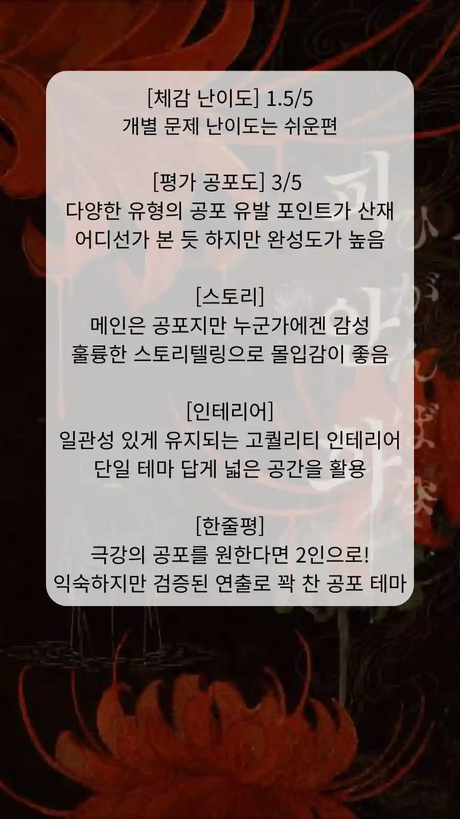 익숙하지만 푸짐한 공포 체험 PLAY33 홍대점 '피안화' 4인 후기