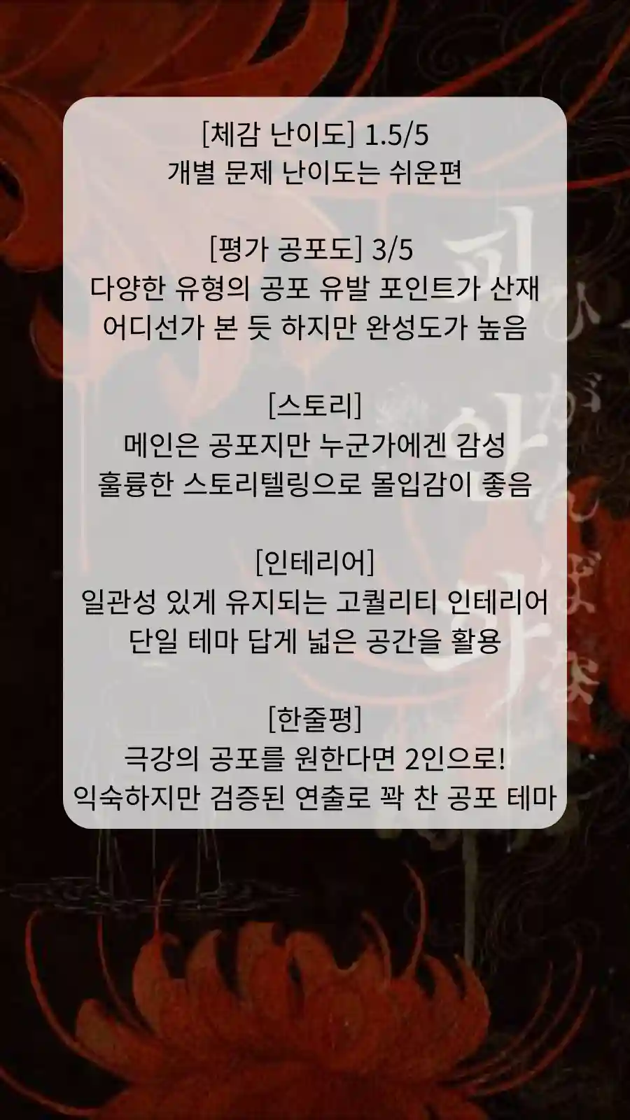 익숙하지만 푸짐한 공포 체험 PLAY33 홍대점 '피안화' 4인 후기