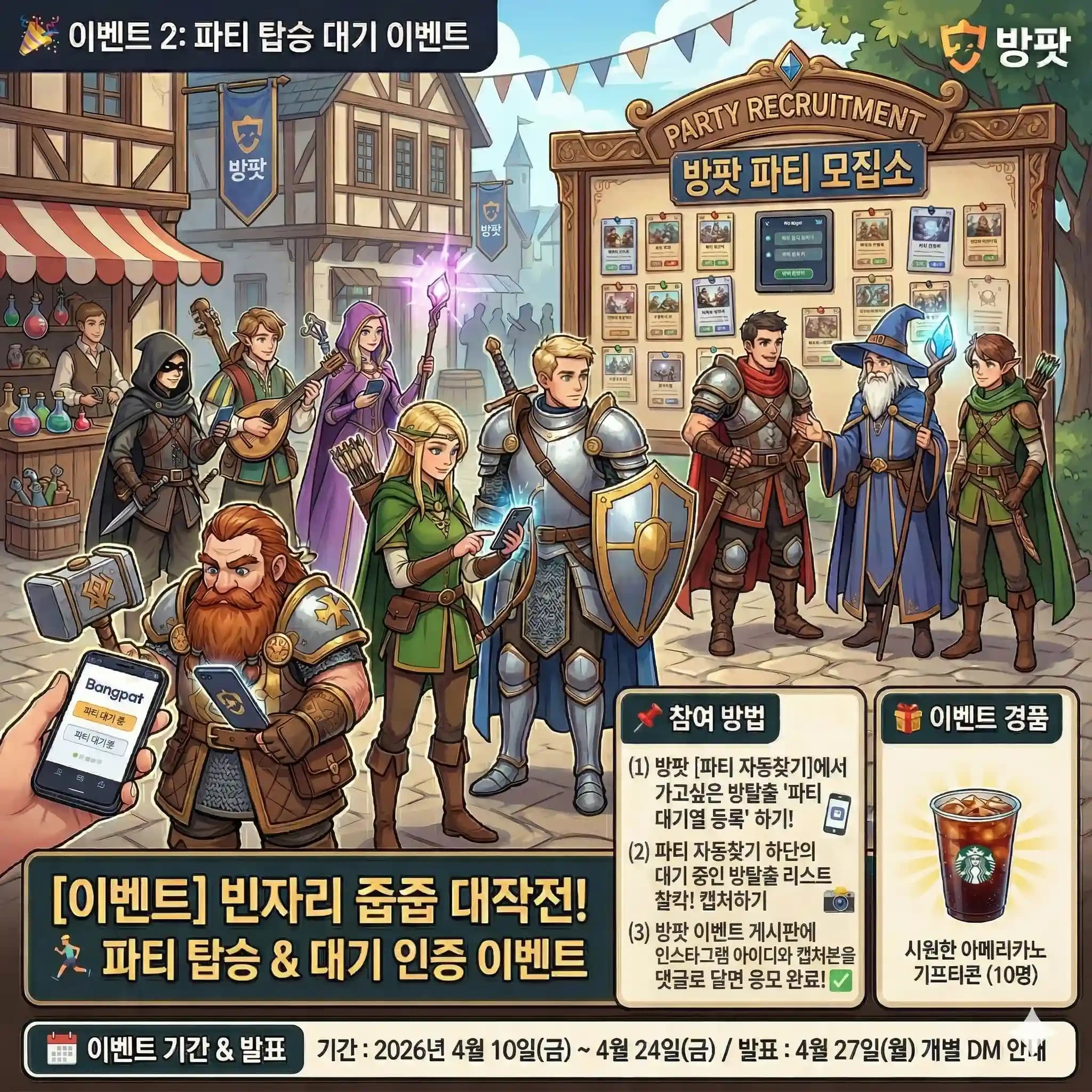 [이벤트 2] 빈자리 줍줍 대작전! 🏃♂️ 파티 탑승 & 대기 인증 이벤트