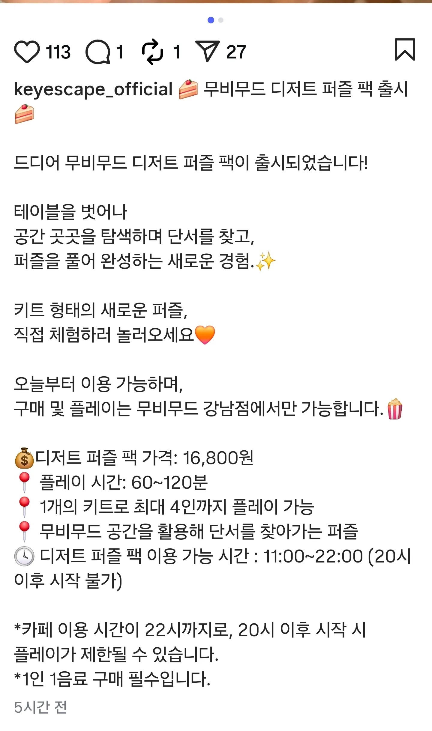 키이스케이프 무비무드 퍼즐팩 출시 인스타이벤트
