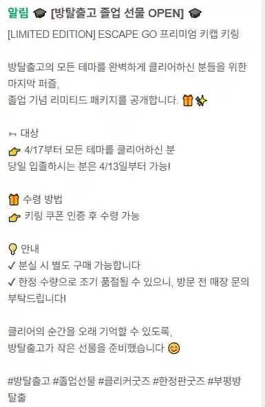 방탈출고 졸업선물 OPEN 안내