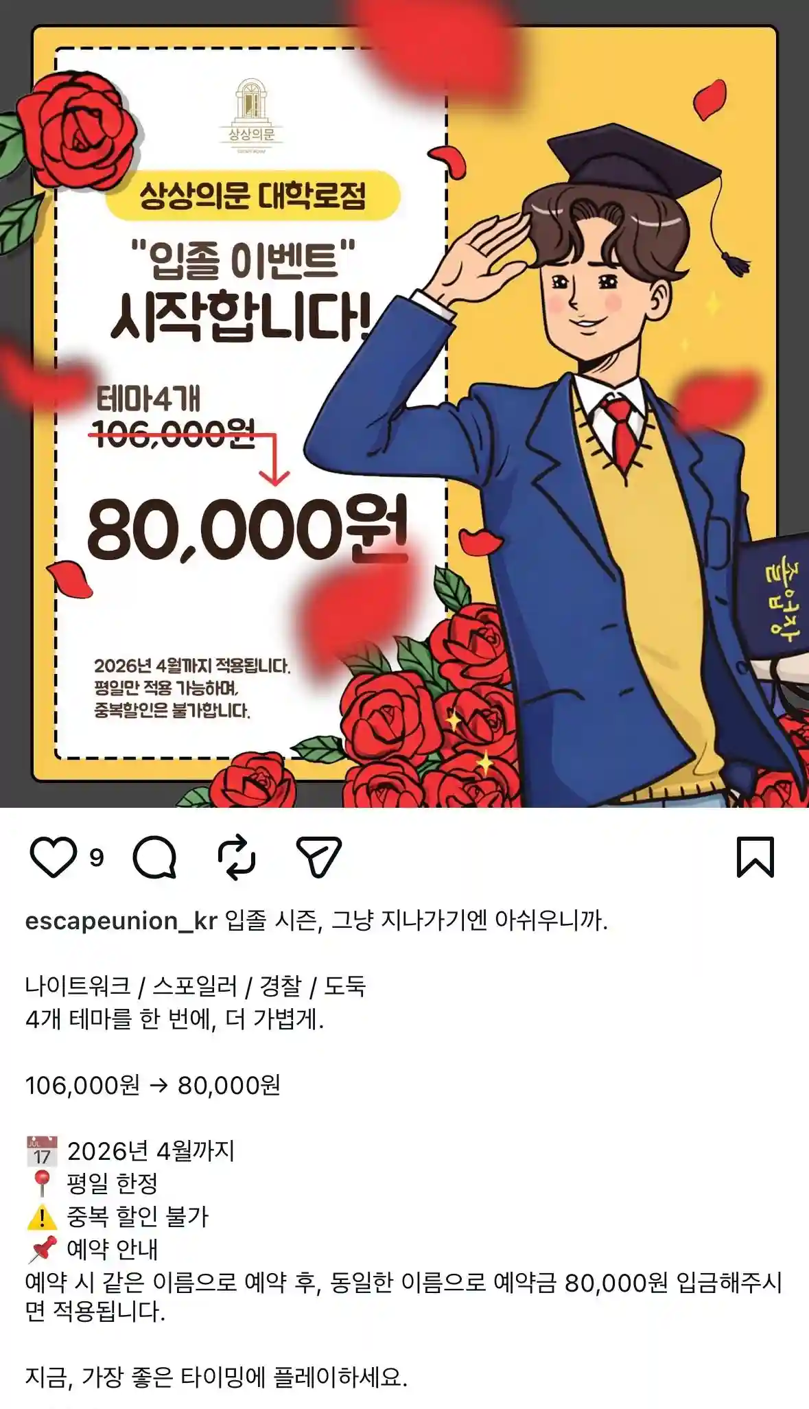 상상의문 대학로점 입졸 이벤트 테마4개 80,000원N