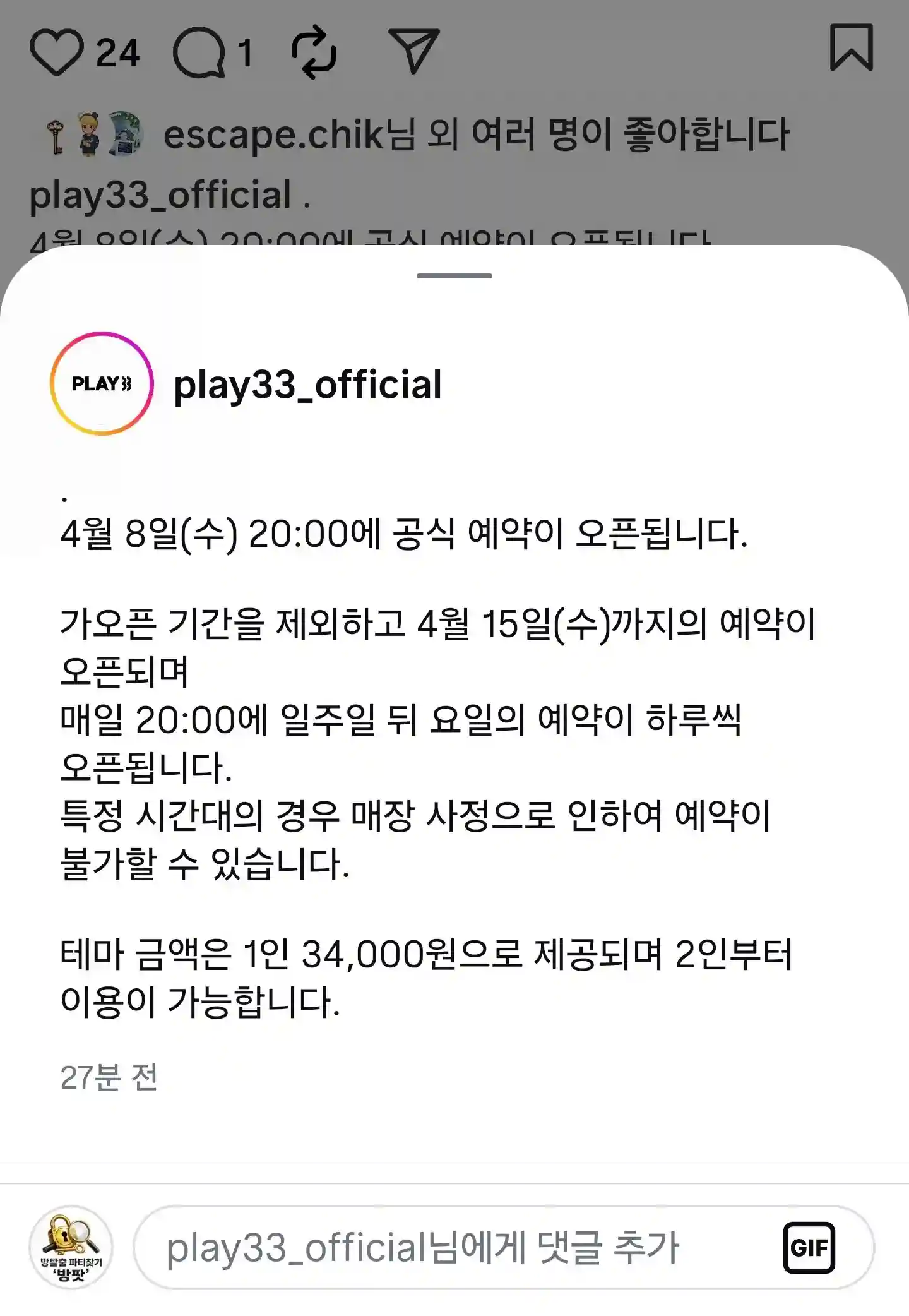 방탈출 카페 코드케이 4월 연방 할인 이벤트+1