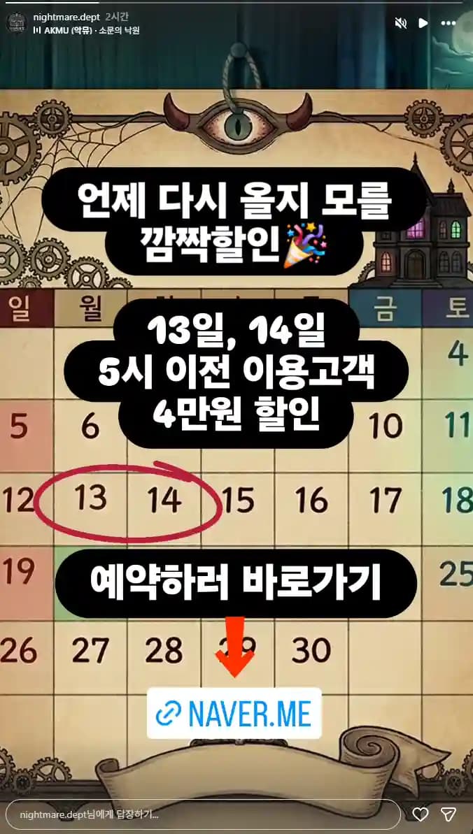 상세한 블로그 후기가 궁금하시면 포스터를 눌러주세요~굉장히 핫한 테마의 후기를또 가지고 왔습니다! ㅋㅋㅋ원래는 주말 예약을 실패하면서이렇게 빠르게 다녀올 생각은 없었단 말이죠.....