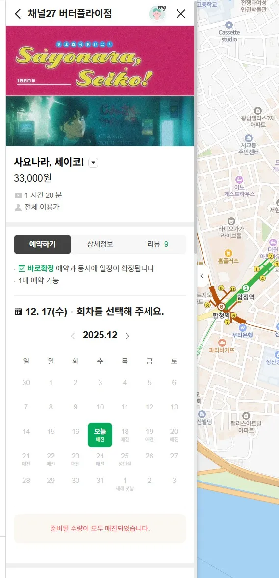사요나라세이코 방탈출은 네이버 아이디로 예약 시 1번 예약하면 2번째는 예약이 안됩니다.